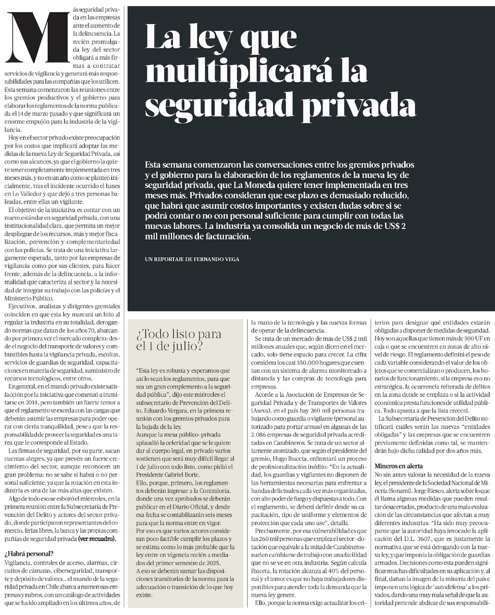 El costoso decreto: Mineras se oponen a norma que las obliga a contratar vigilantes armados - (El Mercurio de Santiago)