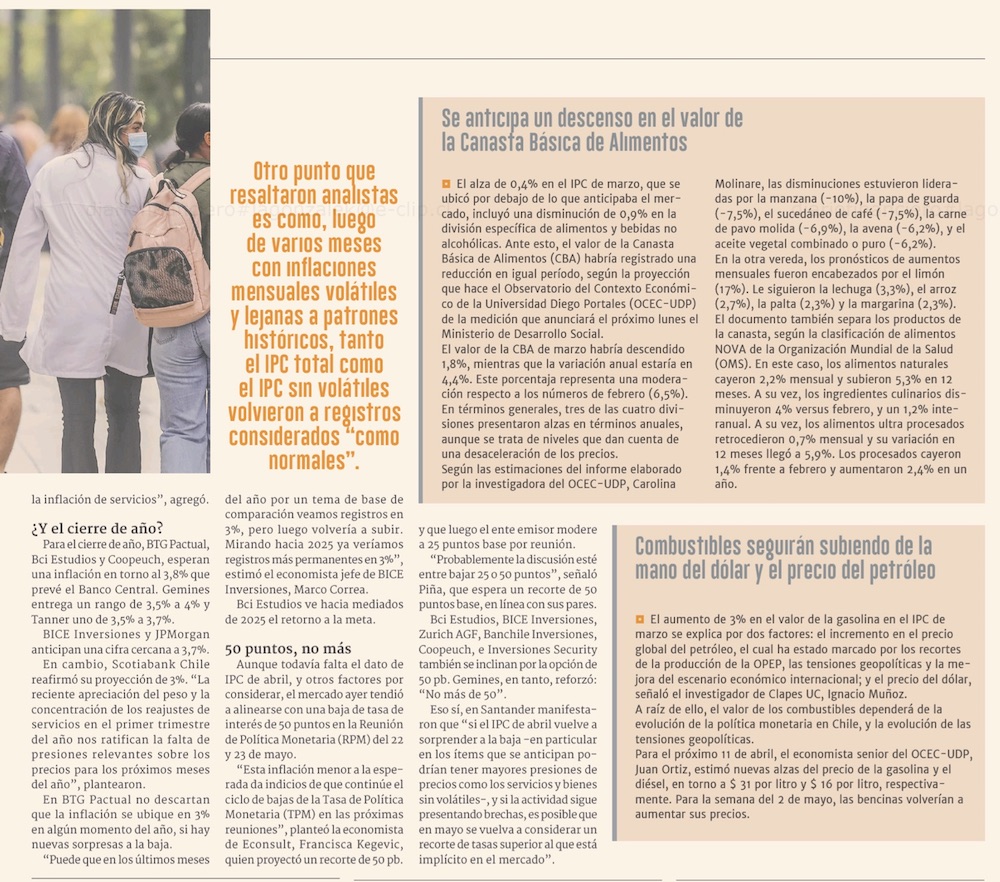 Marzo anota un IPC menor al previsto y el mercado espera con cautela próximos datos - (El Mercurio de Santiago)
