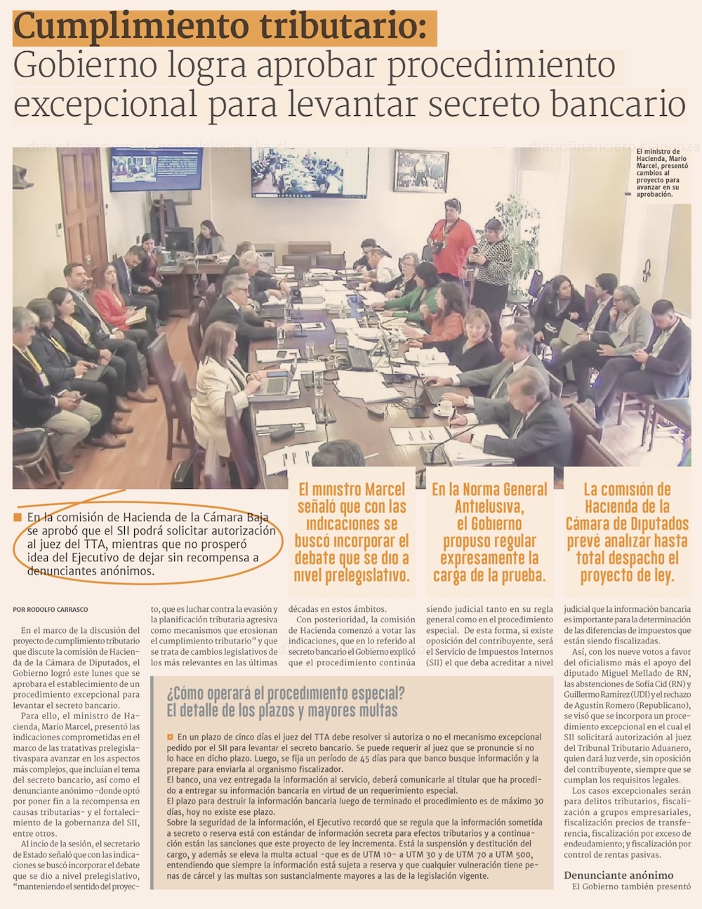 Hacienda logra aprobar levantamiento del secreto bancario con votos de la oposición, pero se enreda en el denunciante anónimo - (Pulso)