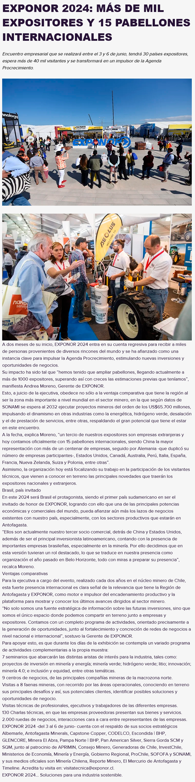 Exponor 2024: Más de mil expositores, 15 pabellones internacionales y sobre 40 mil visitantes - (portalinnova.cl)