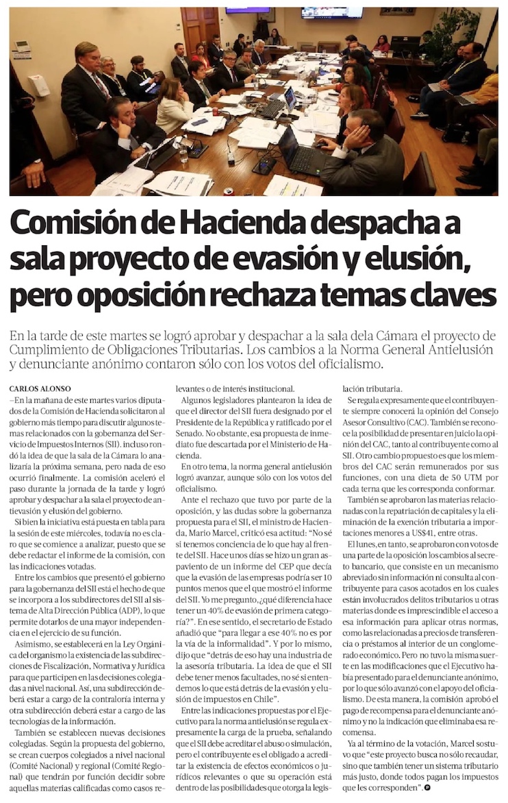Cumplimiento tributario: Gobierno logra aprobar cambios a norma general antielusiva y oposición advierte “poder ilimitado del SII” - (Diario Financiero)
