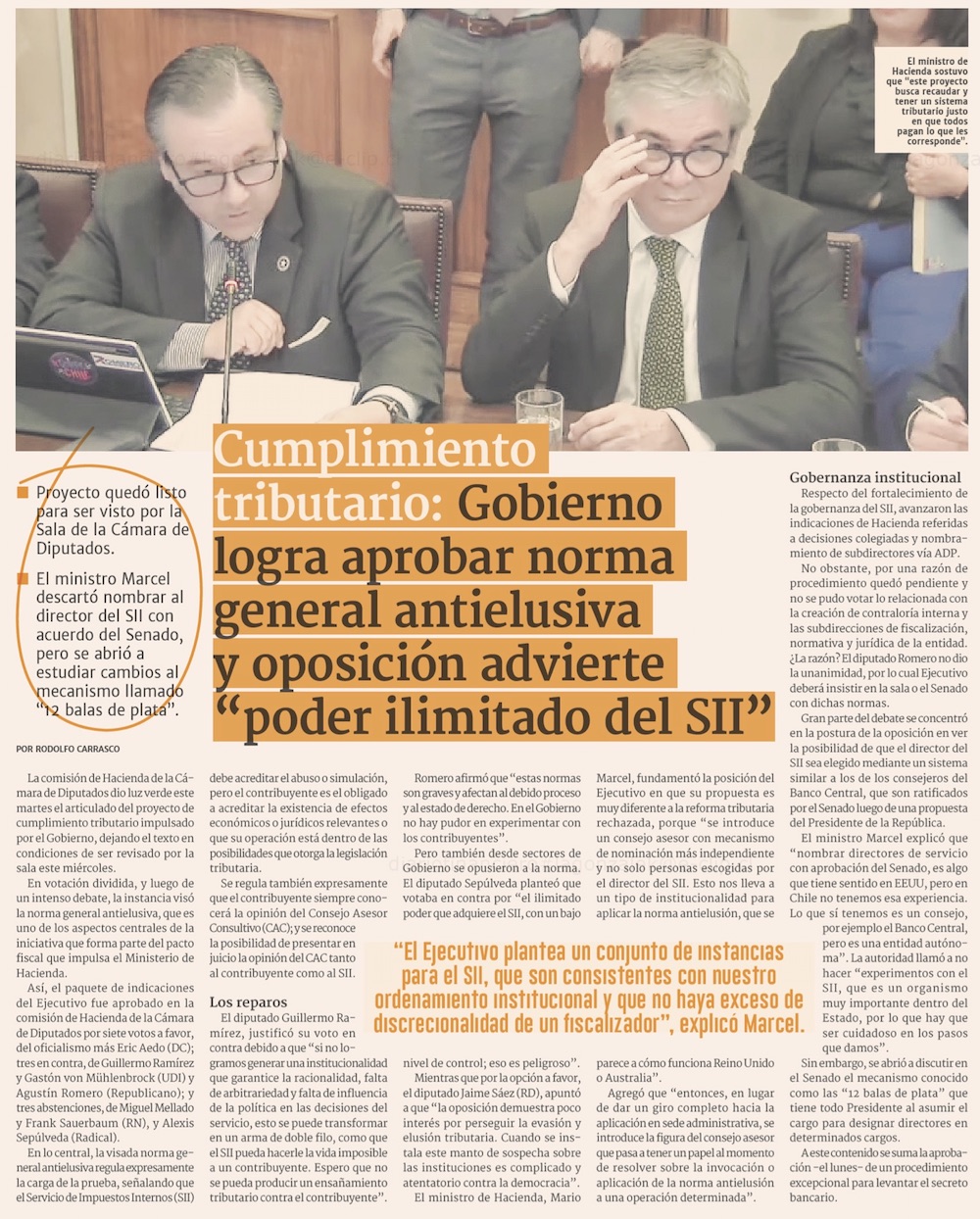 Comisión de Hacienda despacha a sala proyecto de evasión y elusión, pero oposición rechaza temas claves - (Pulso)
