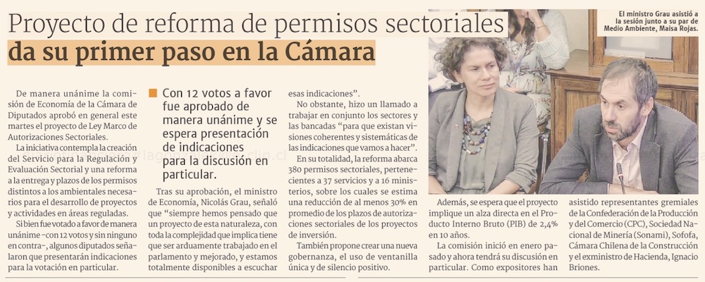 Comisión de Economía aprobó idea de legislar regulación a la “permisología” - (El Mercurio de Santiago)