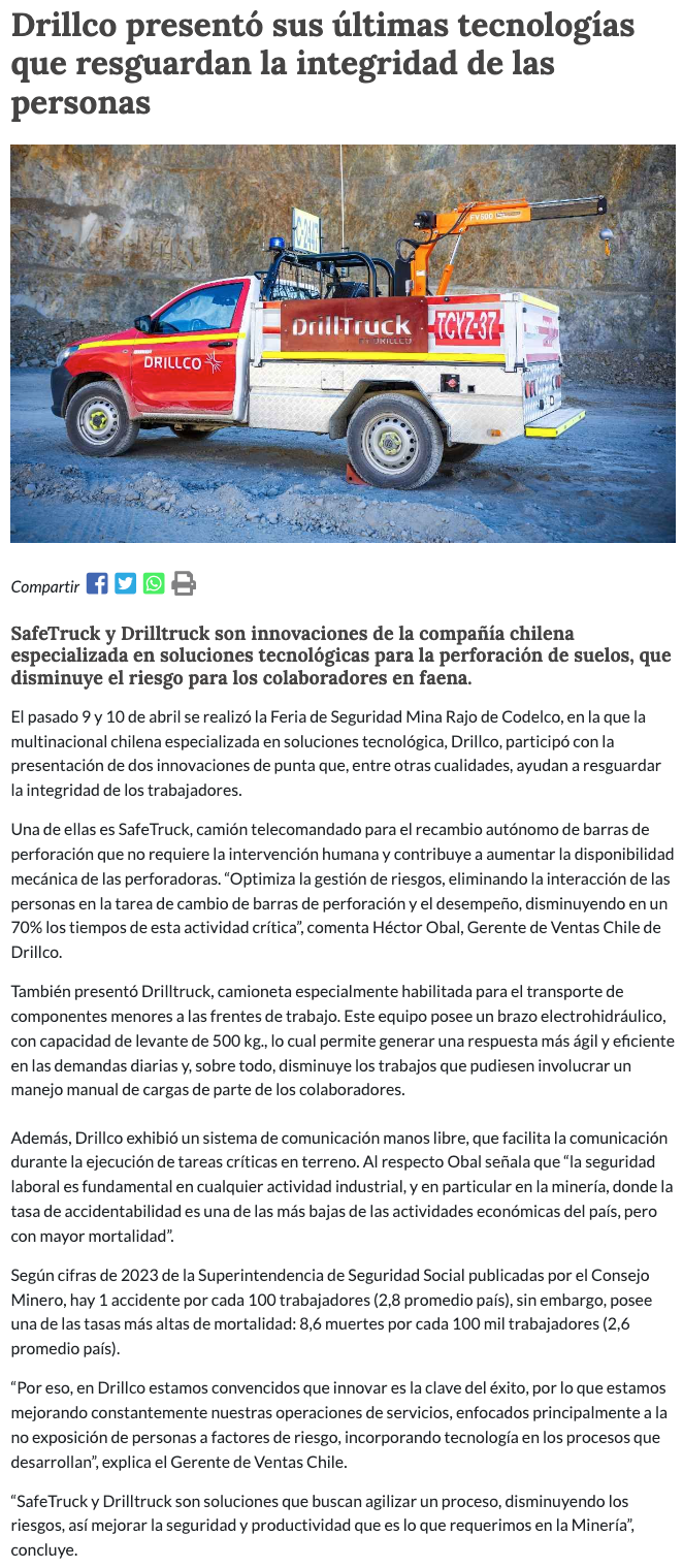 Drillco presentó sus últimas tecnologías que resguardan la integridad de las personas - (portalinnova.cl)