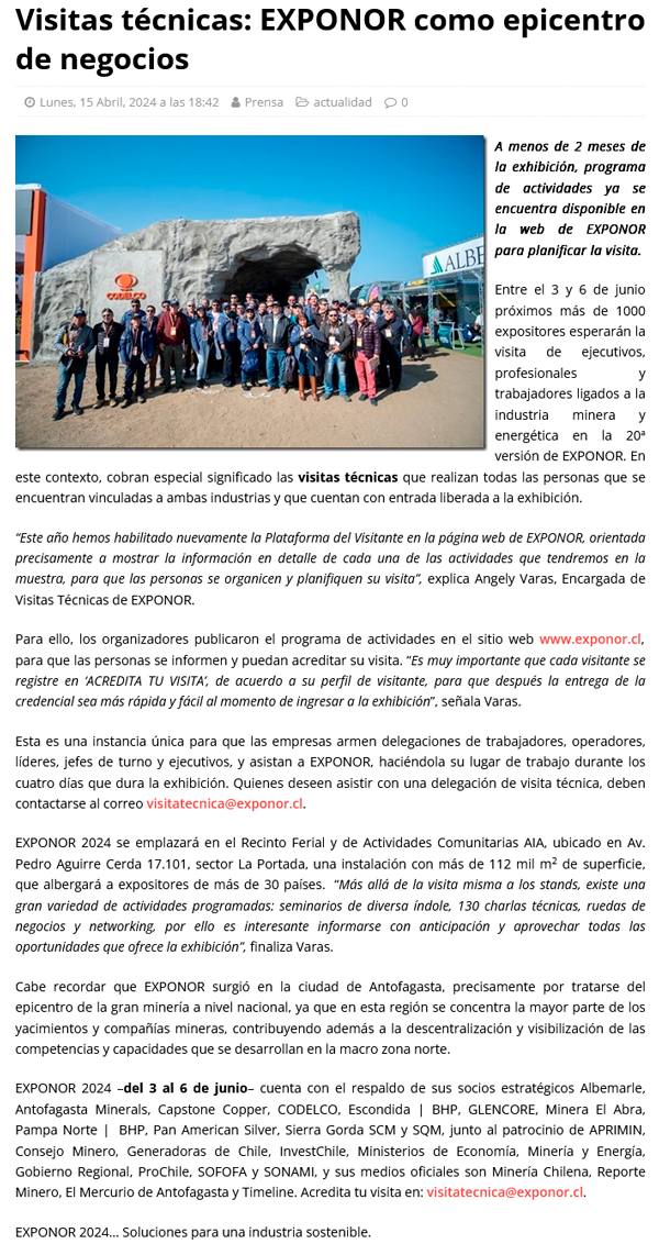 Visitas técnicas: EXPONOR como epicentro de negocios - (regionesnoticias.cl)