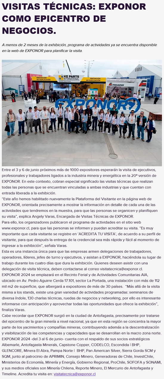 Visitas técnicas: EXPONOR como epicentro de negocios - (mvcomunicaciones.cl)