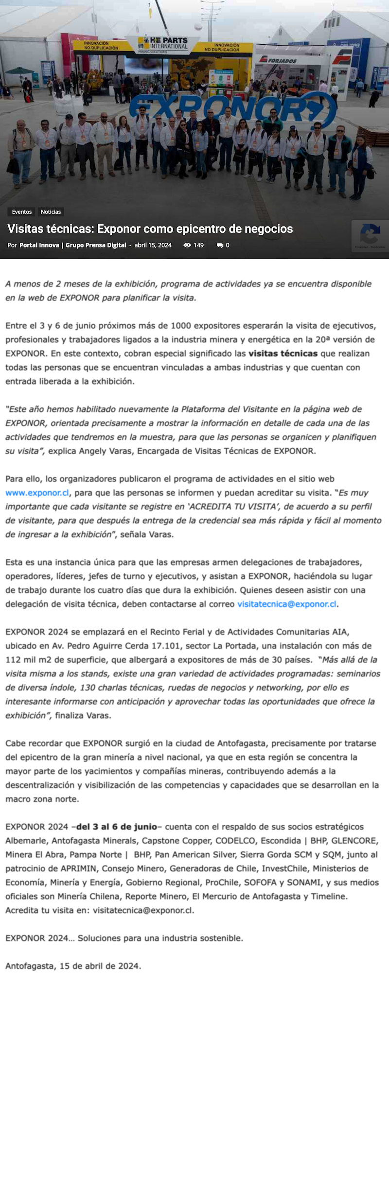 Visitas técnicas: EXPONOR como epicentro de negocios - (regionesnoticias.cl)