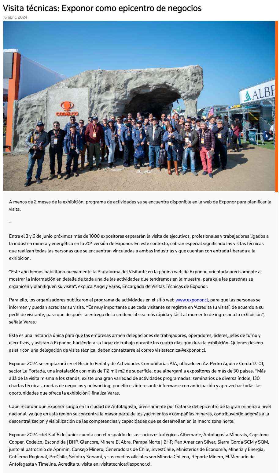 Visitas técnicas: EXPONOR como epicentro de negocios - (norteyenegia.cl)
