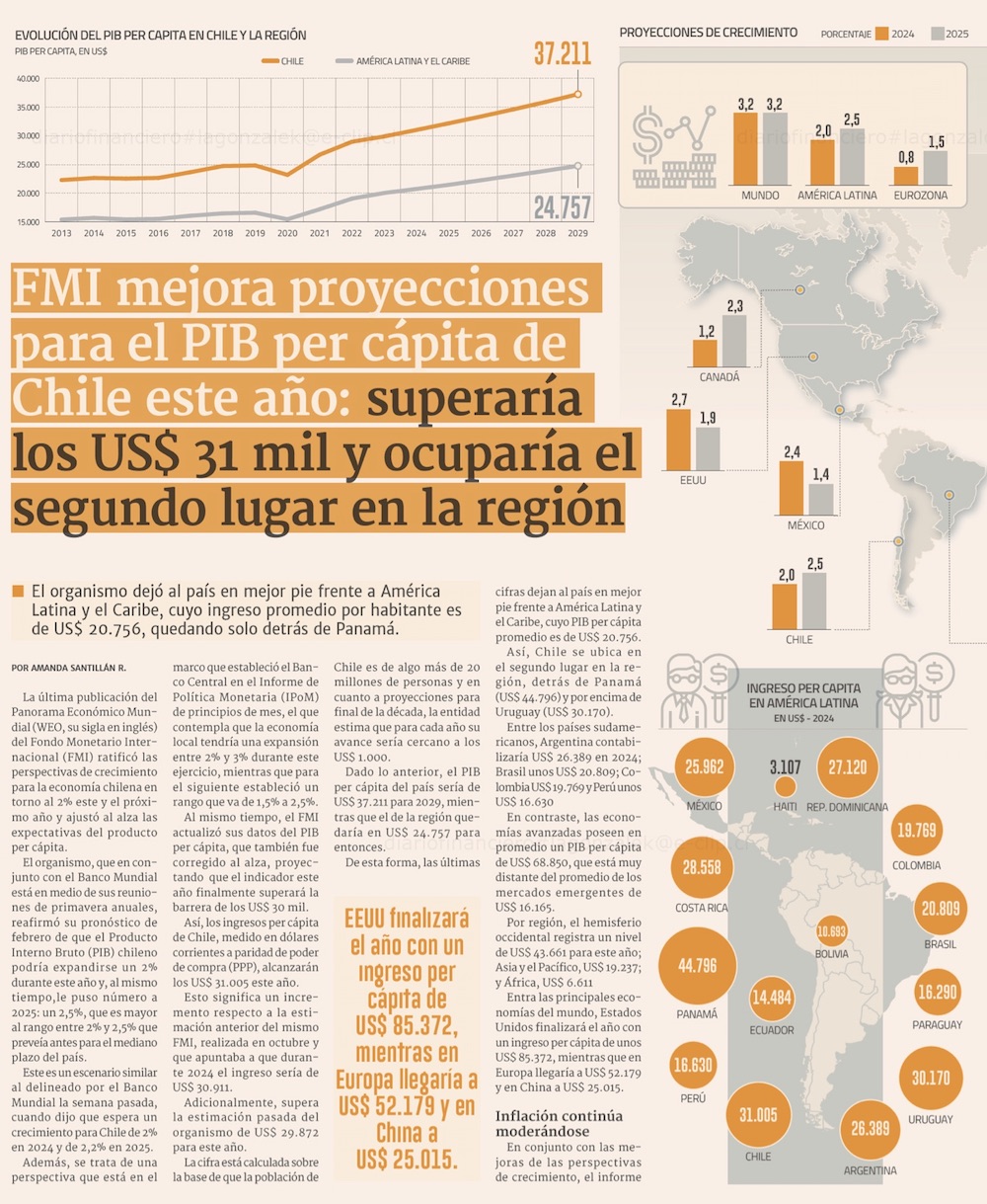 FMI mejora perspectiva de Chile pero ratifica que el país pierde terreno y crecerá menos que el mundo y que América Latina en 2024-2029 - (Pulso)