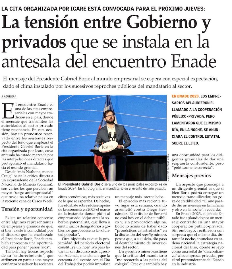 Empresarios de cara a Enade 2024: “no queremos aceptar que en Chile nos acostumbramos a crímenes terribles y nuestro país no crezca” - (Diario Financiero)