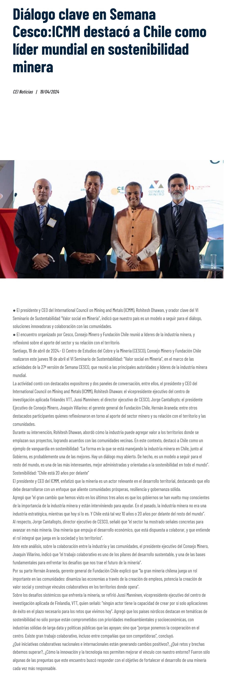 ICMM destacó a Chile como líder mundial en sostenibilidad minera - (eldiariosantiago.cl)