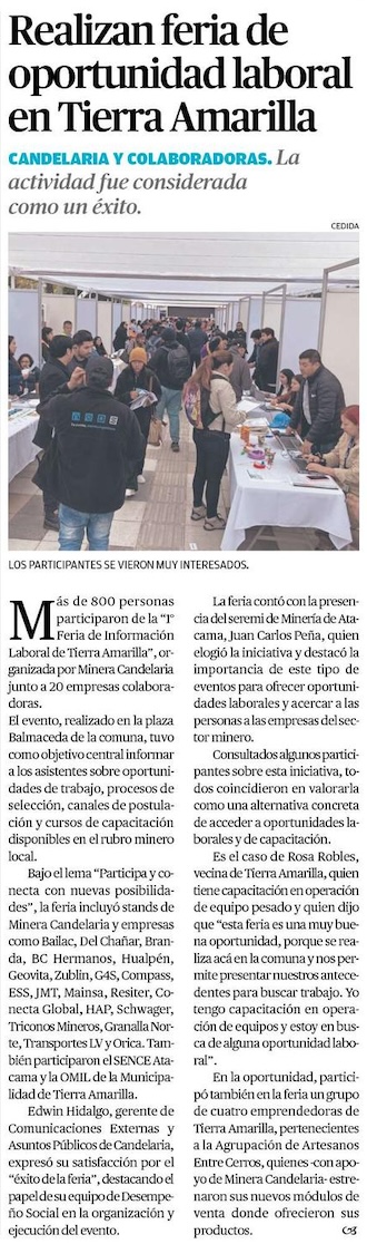 Exitosa Feria de Información Laboral de Tierra Amarilla organizada por Candelaria y sus empresas colaboradoras - (madero.cl)