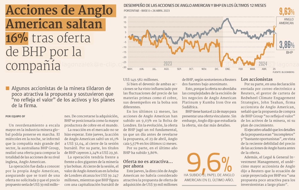 Mineras suben tras propuesta de compra de Anglo por BHP, pero Meta y datos de EEUU generan nerviosismo en mercado - (DF Online)