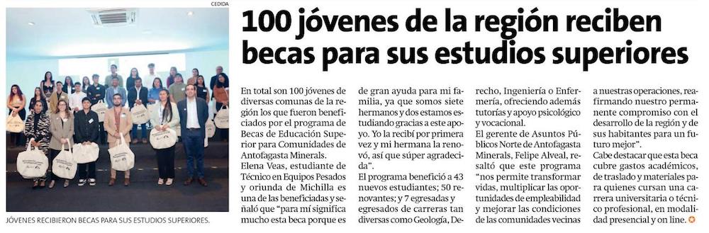Cien jóvenes de la región reciben becas para sus estudios superiores - (El Mercurio de Calama)