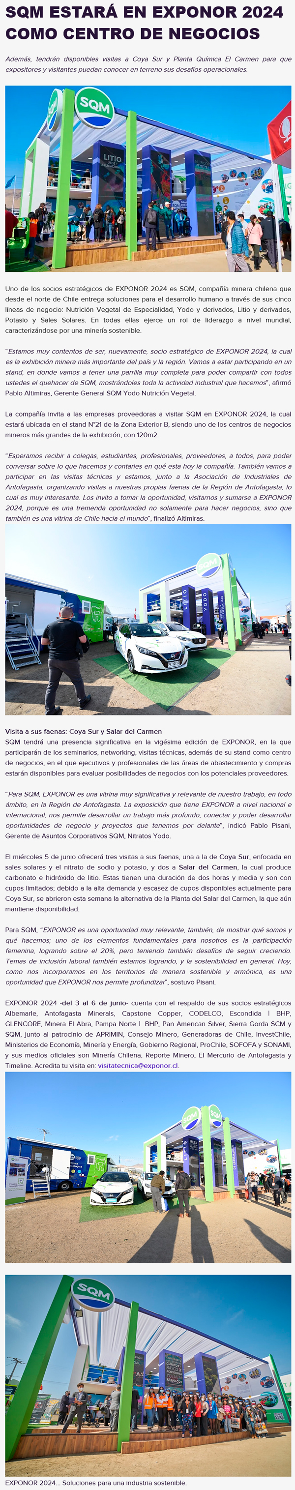 SQM estará como Centro de Negocios en EXPONOR 2024 - (madero.cl)