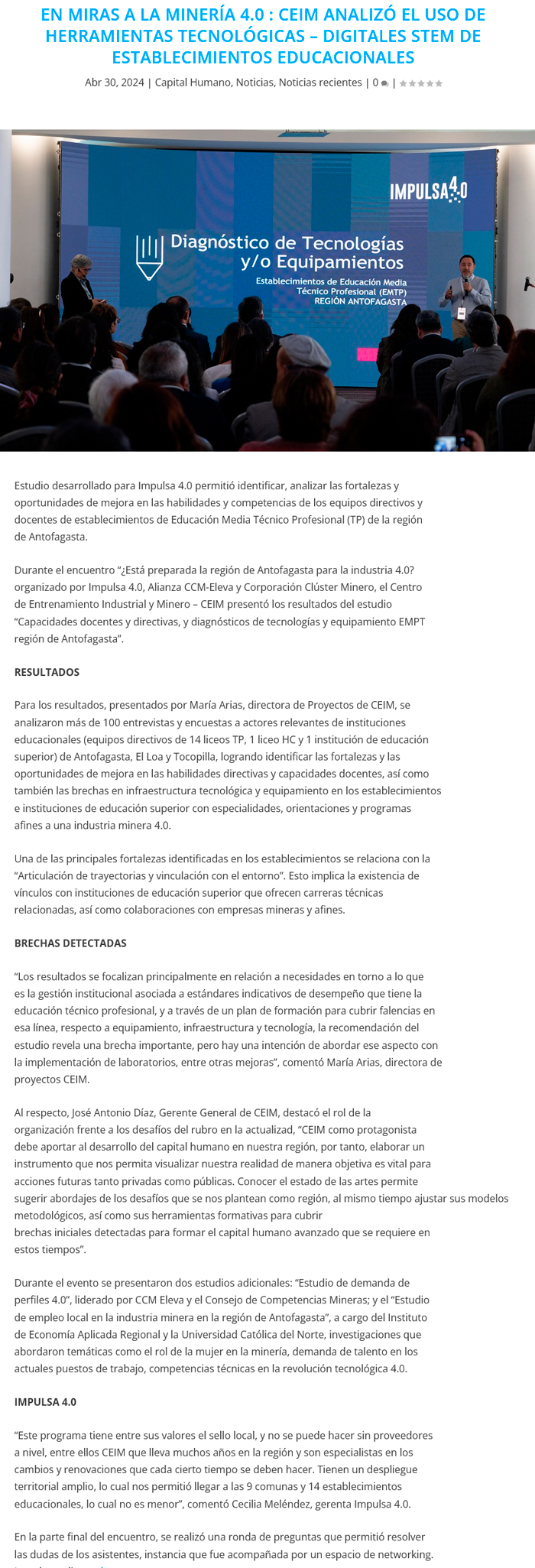 En miras a la minería 4.0: CEIM analizó el uso de herramientas tecnológicas – digitales STEM de establecimientos educacionales - (calamaenlinea.cl)