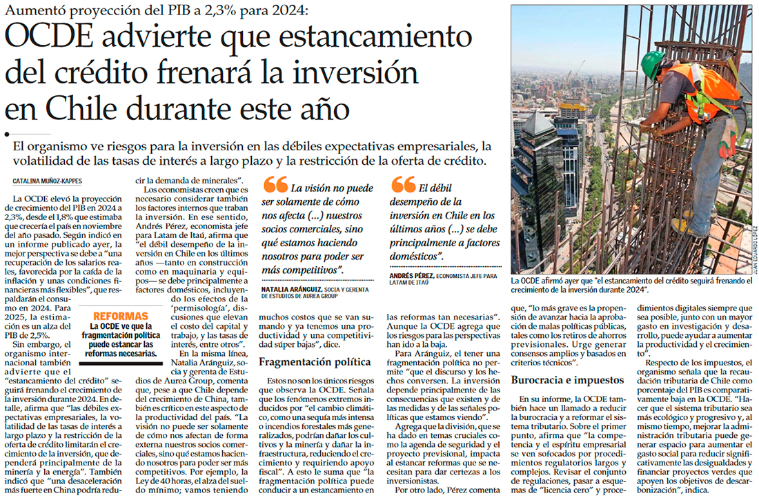 Ocde mejora las perspectivas para Chile y pide reducir la burocracia para los proyectos, junto con una reforma tributaria - (Pulso)