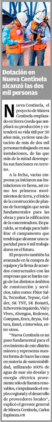 2 mil trabajadores ya laboran en primeras faenas del proyecto Nueva Centinela de Antofagasta Minerals - (soyantofagasta)