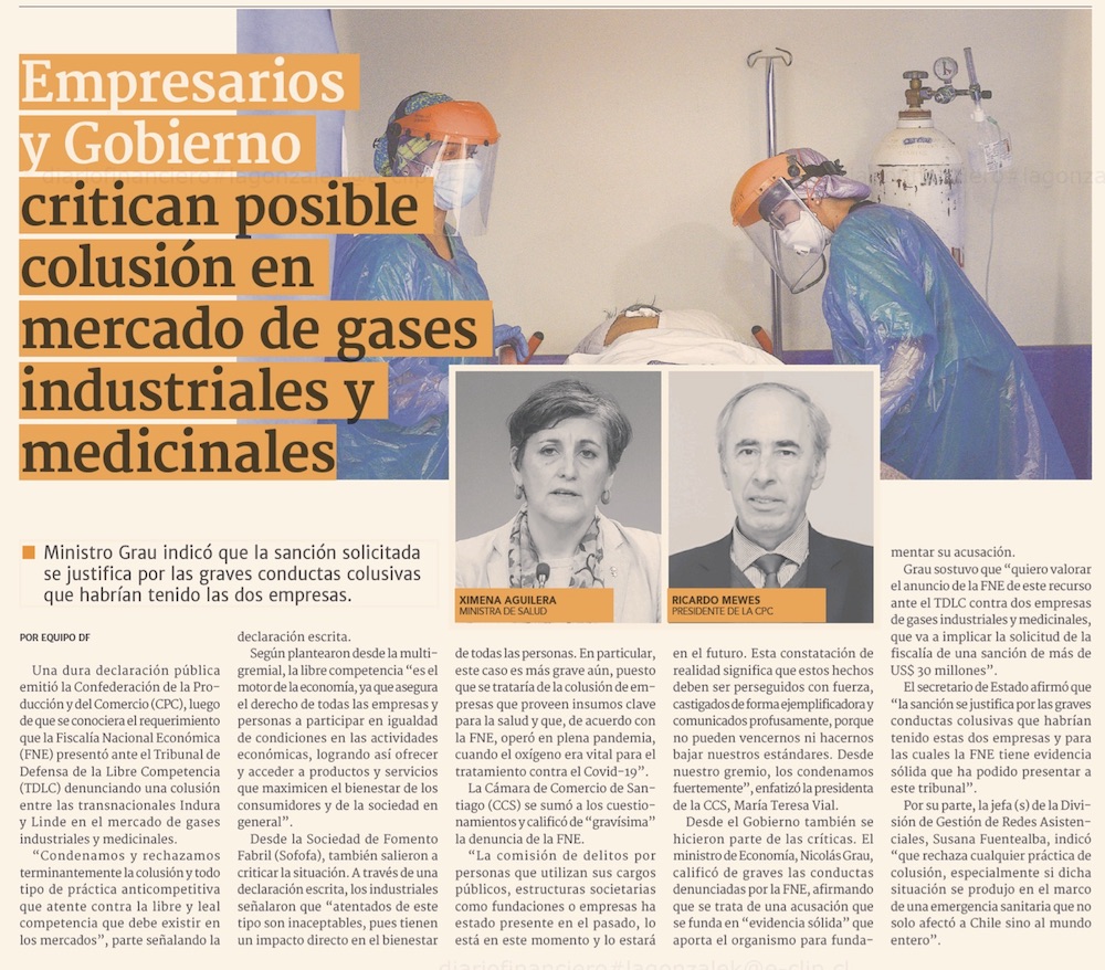 Colusión: Hospitales pagaron hasta un 41% más caro en licitaciones de gases medicinales - (El Mercurio de Santiago)