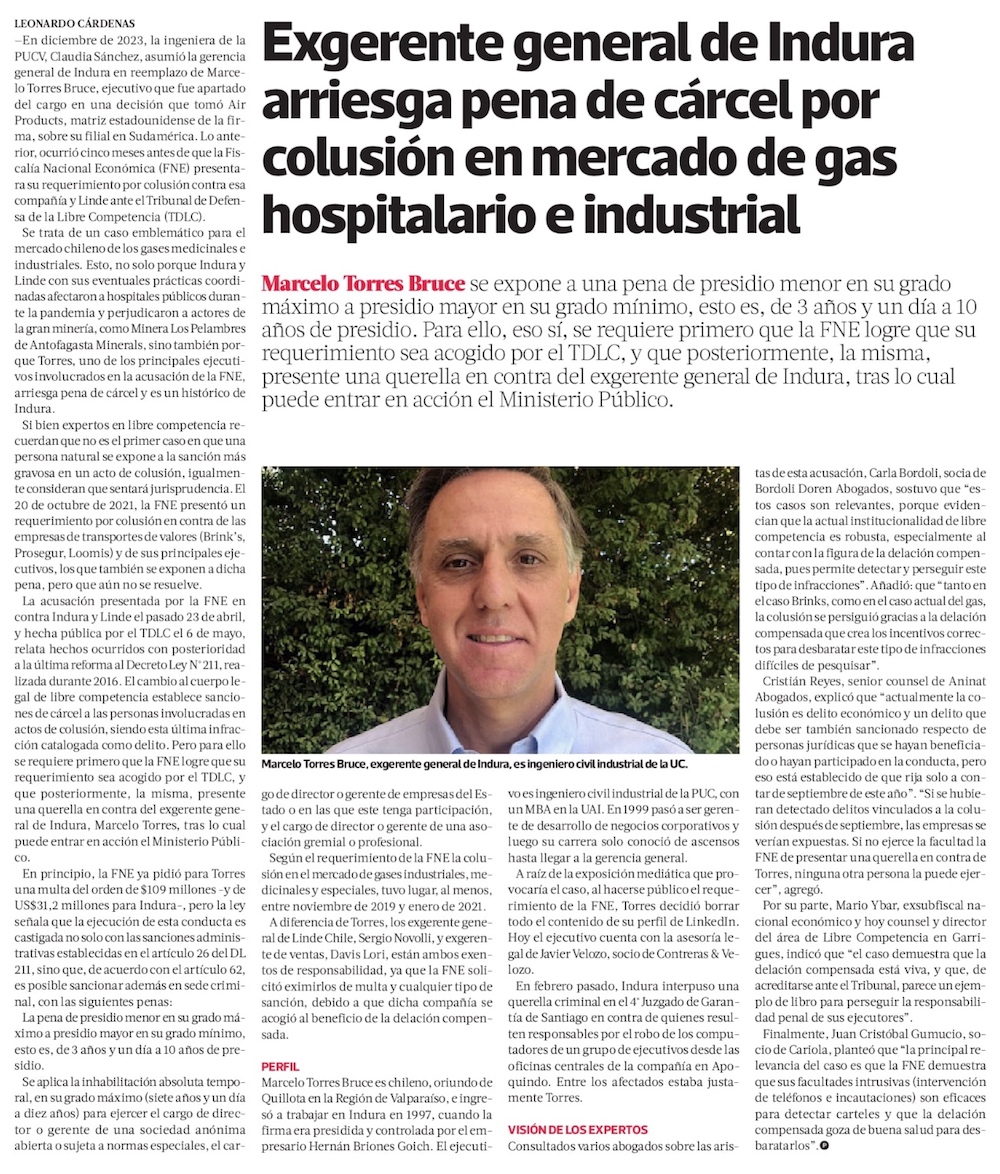 Empresarios y Gobierno critican posible colusión en mercado de gases industriales y medicinales - (Diario Financiero)