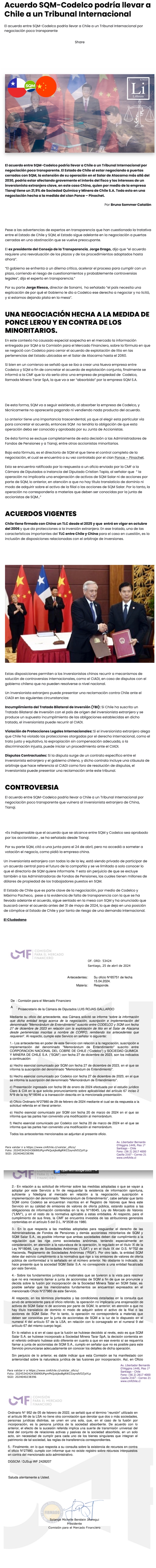 Acuerdo SQM-Codelco podría llevar a Chile ante un Tribunal Internacional - (news.eseuro.com)