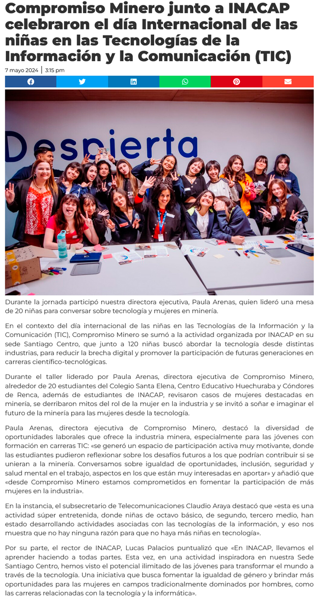 Compromiso Minero junto a INACAP celebraron el día Internacional de las niñas en las Tecnologías de la Información y la Comunicación (TIC) - (portaleduca.cl)