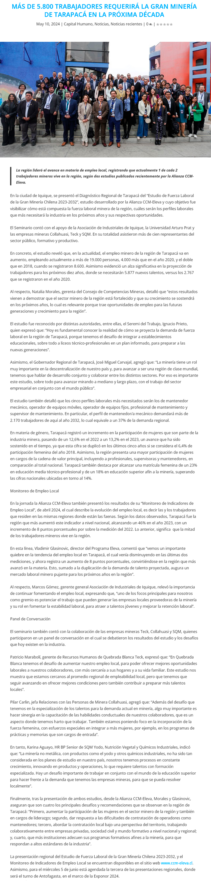 Estudio de CCM-Eleva revela proyecciones de empleo minero en Tarapacá - (mch.cl)