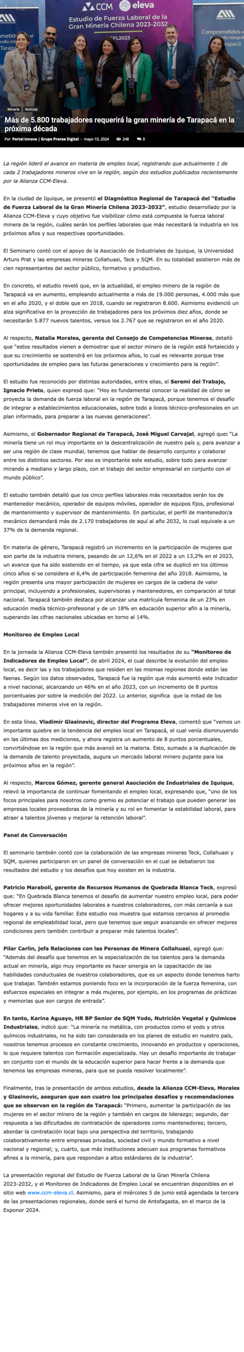 Estudio de CCM-Eleva revela proyecciones de empleo minero en Tarapacá - (mch.cl)