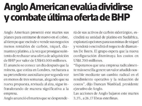 Anglo American anuncia nuevo foco de desarrollo con el cobre y el hierro como ejes - (El Mercurio de Santiago)