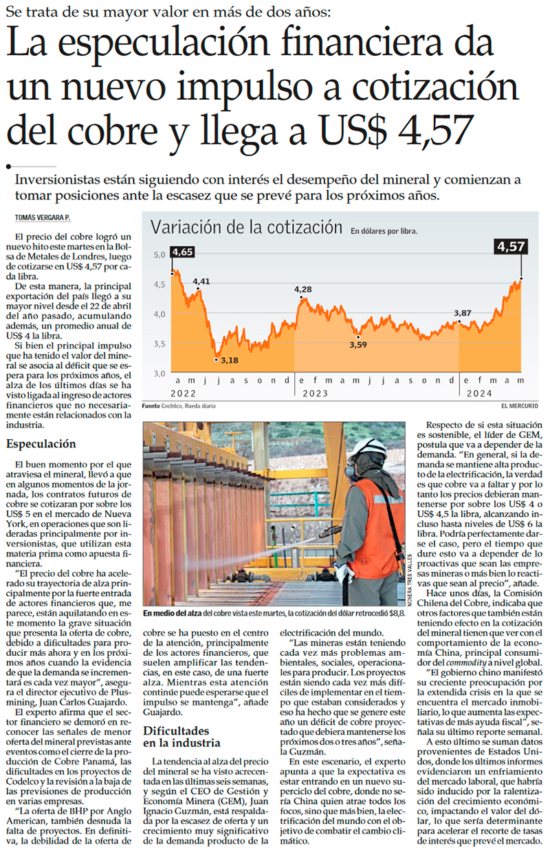 Cobre mantiene tendencia al alza y se proyecta un nuevo súper ciclo - (El Mercurio de Antofagasta)