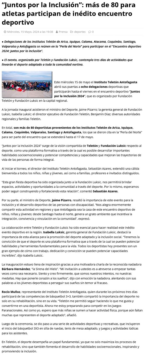 Exitoso inicio de encuentro deportivo "Juntos por la Inclusión" de Teletón - (El Mercurio de Antofagasta)