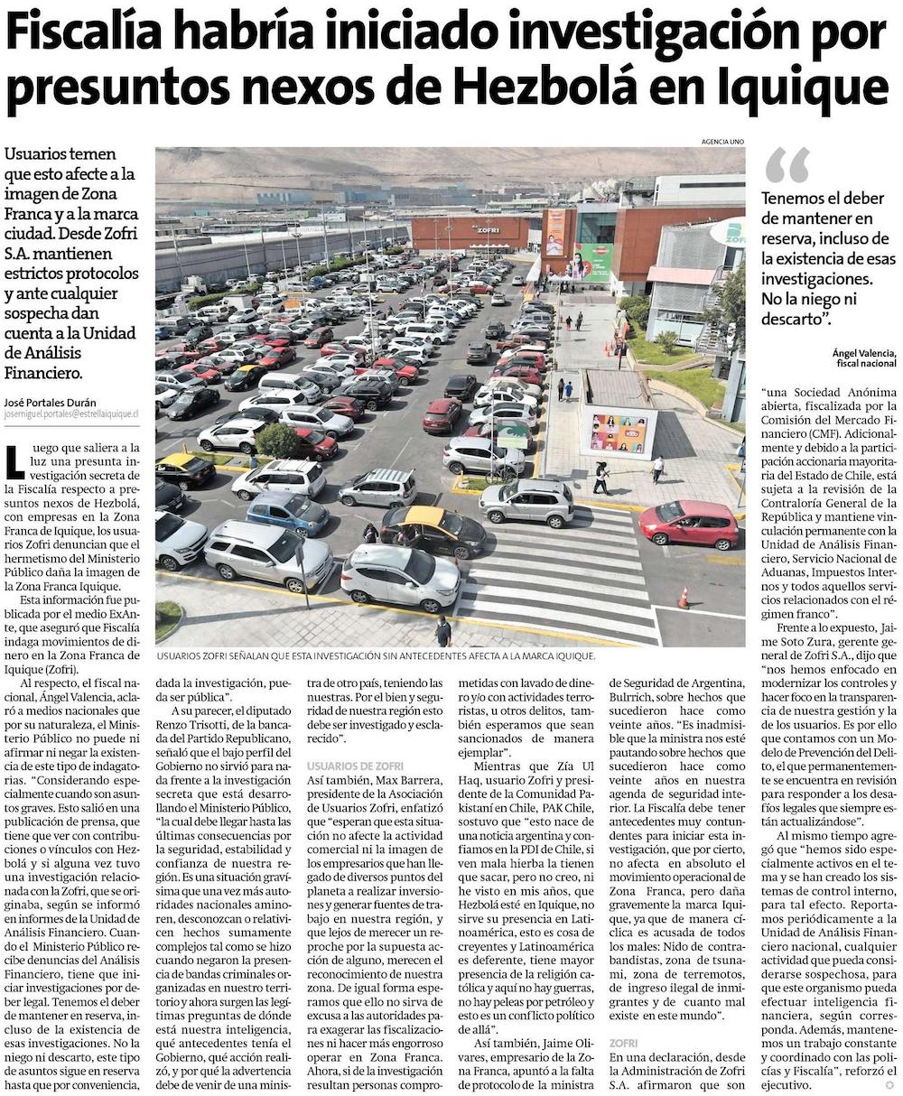 Valencia e investigación a Hezbolá en Chile: "No puedo afirmar ni negar su existencia" - (Medios Regionales Cadena El Mercurio)