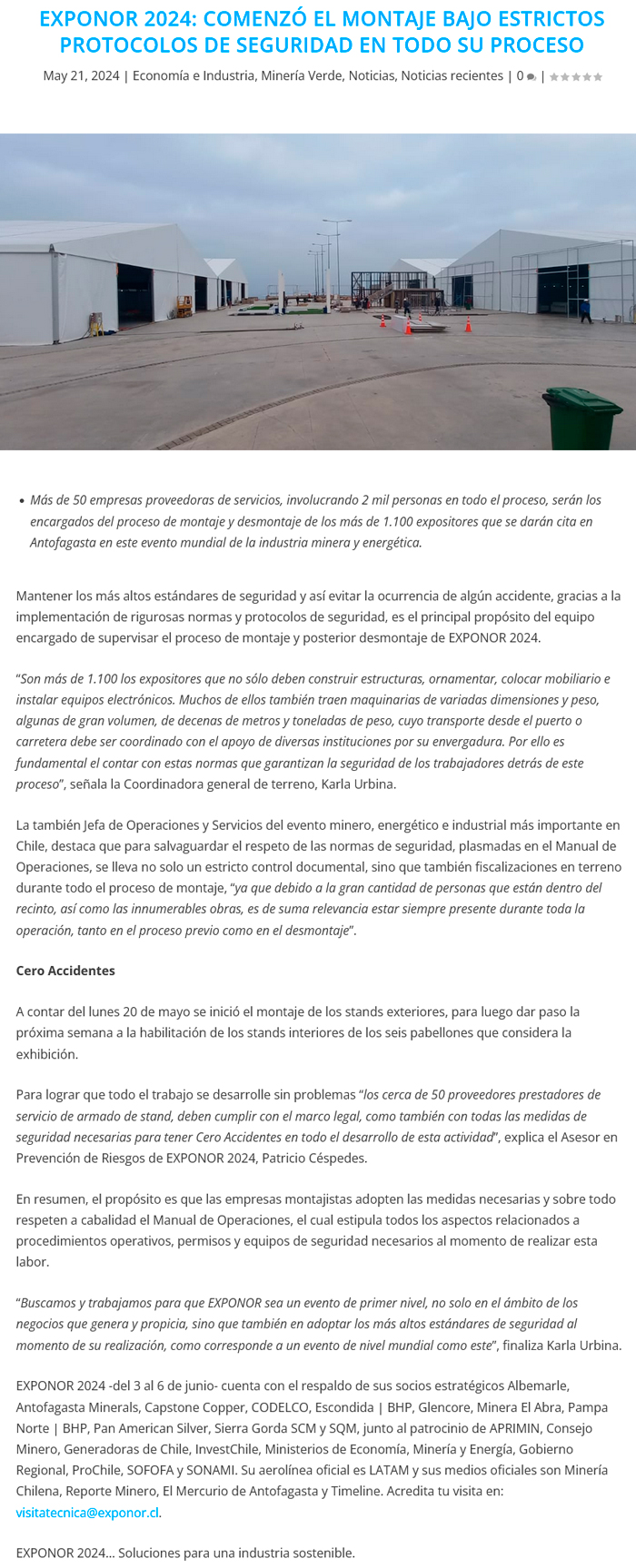 Comenzó el montaje bajo estrictos protocolos de seguridad en todo su proceso en EXPONOR 2024 - (antofagastaonline.cl)