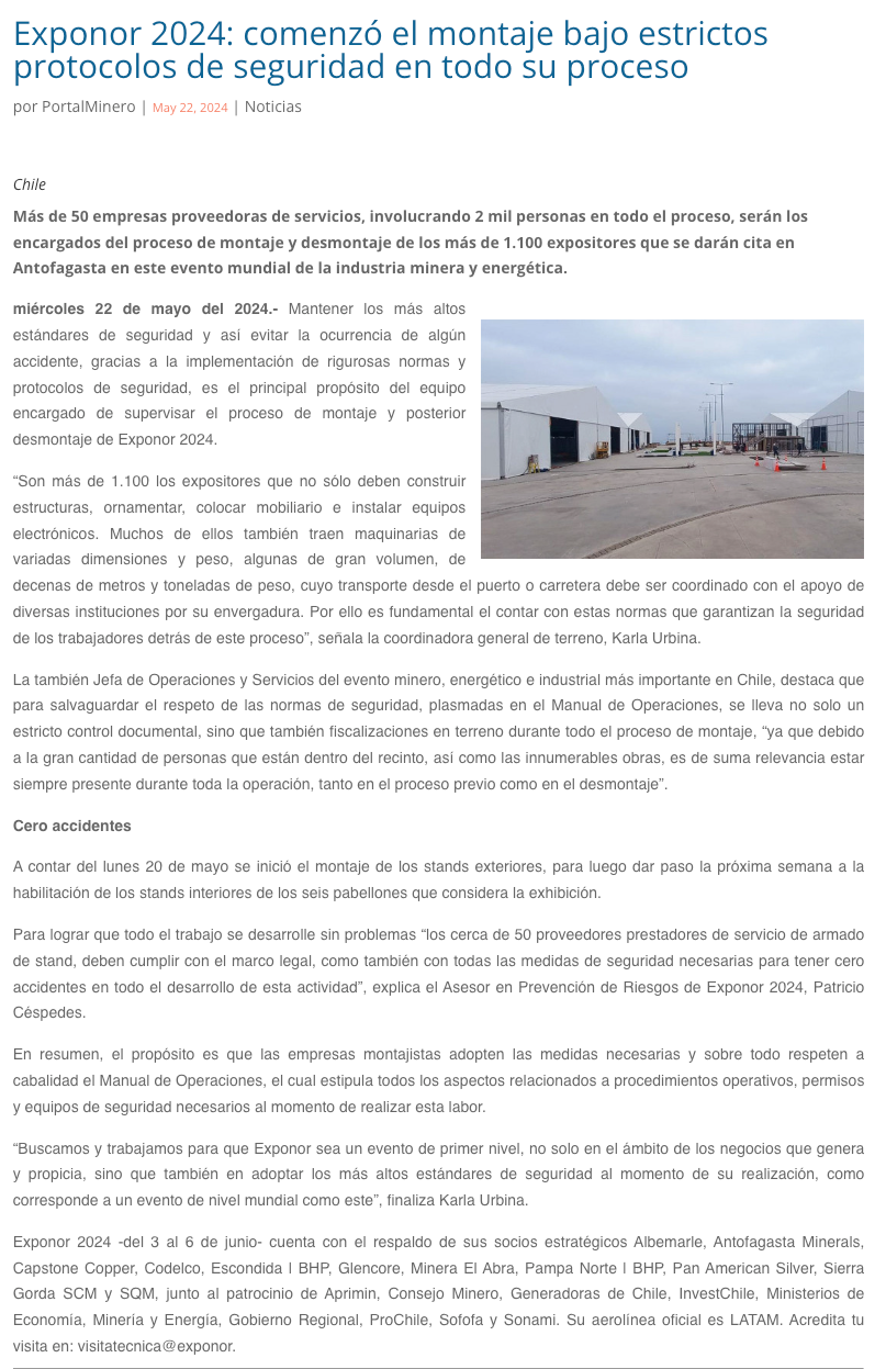 EXPONOR 2024: comenzó el montaje bajo estrictos protocolos de seguridad en todo su proceso - (mvcomunicaciones.cl)