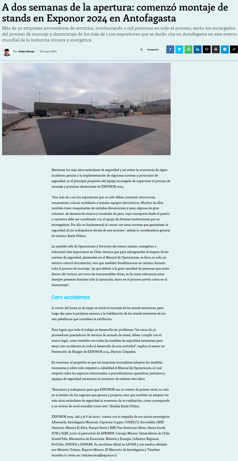 EXPONOR 2024: comenzó el montaje bajo estrictos protocolos de seguridad en todo su proceso - (mvcomunicaciones.cl)