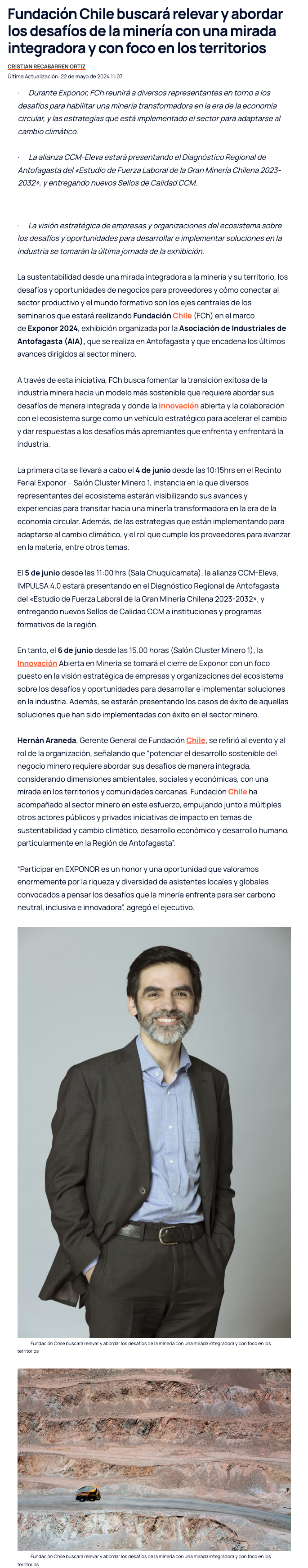 En Exponor 2024 Fundación Chile buscará relevar y abordar los desafíos de la minería con una mirada integradora y con foco en los territorios - (mvcomunicaciones.cl)
