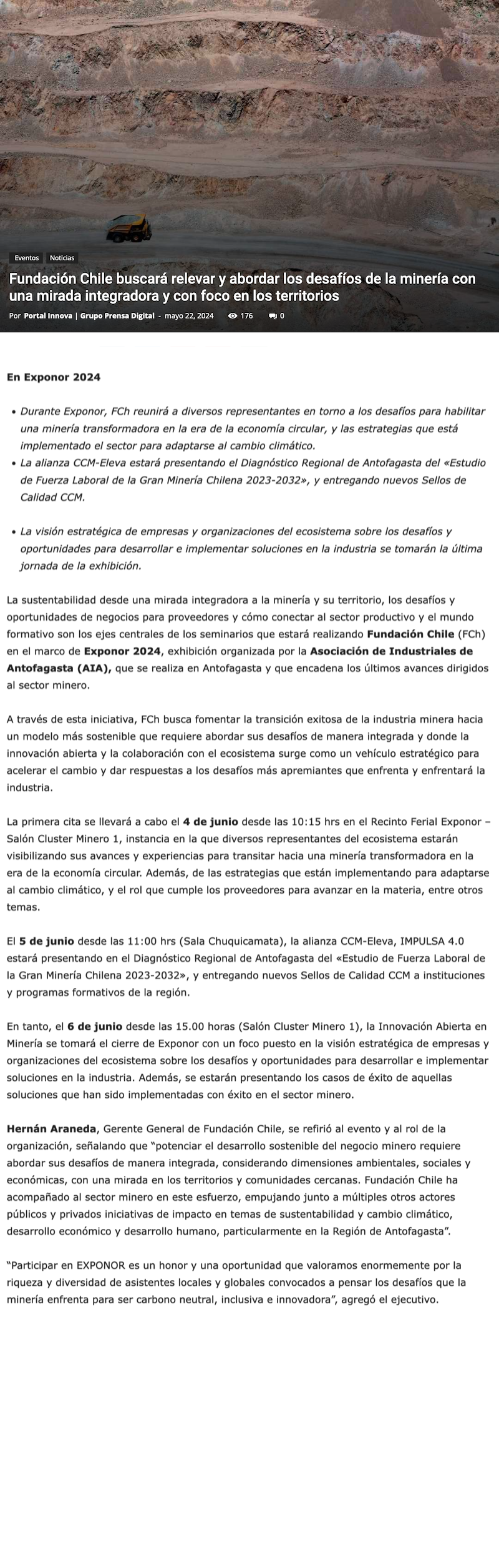 En Exponor 2024 Fundación Chile buscará relevar y abordar los desafíos de la minería con una mirada integradora y con foco en los territorios - (mvcomunicaciones.cl)