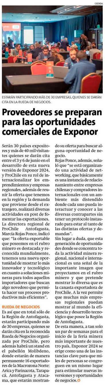 Proveedores mineros de ProChile se preparan para oportunidades que tendrán en Exponor 2024 - (elamerica)
