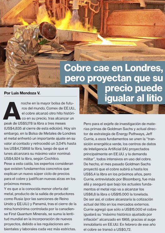 Avance del cobre llevaría al PIB a un alza de 4% en 2025 - (El Mercurio de Santiago)