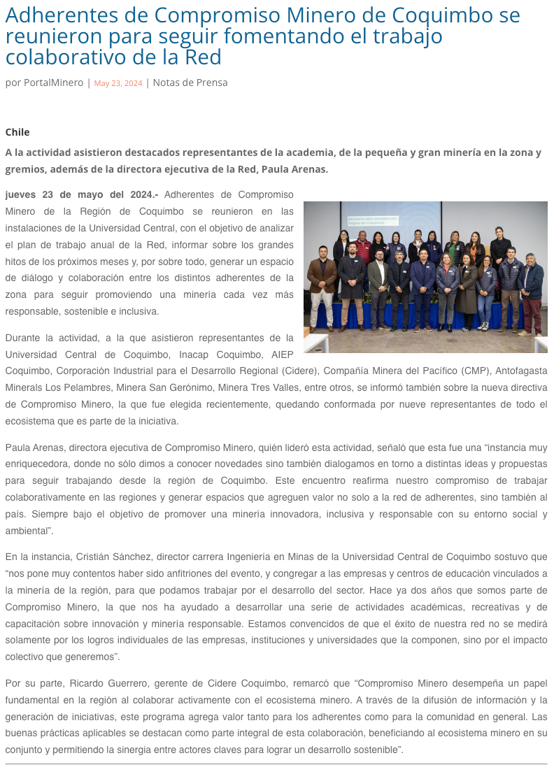 Región de Coquimbo. Adherentes de Compromiso Minero se reunieron para seguir fomentando el trabajo colaborativo de la Red - (serenaycoquimbo.cl)