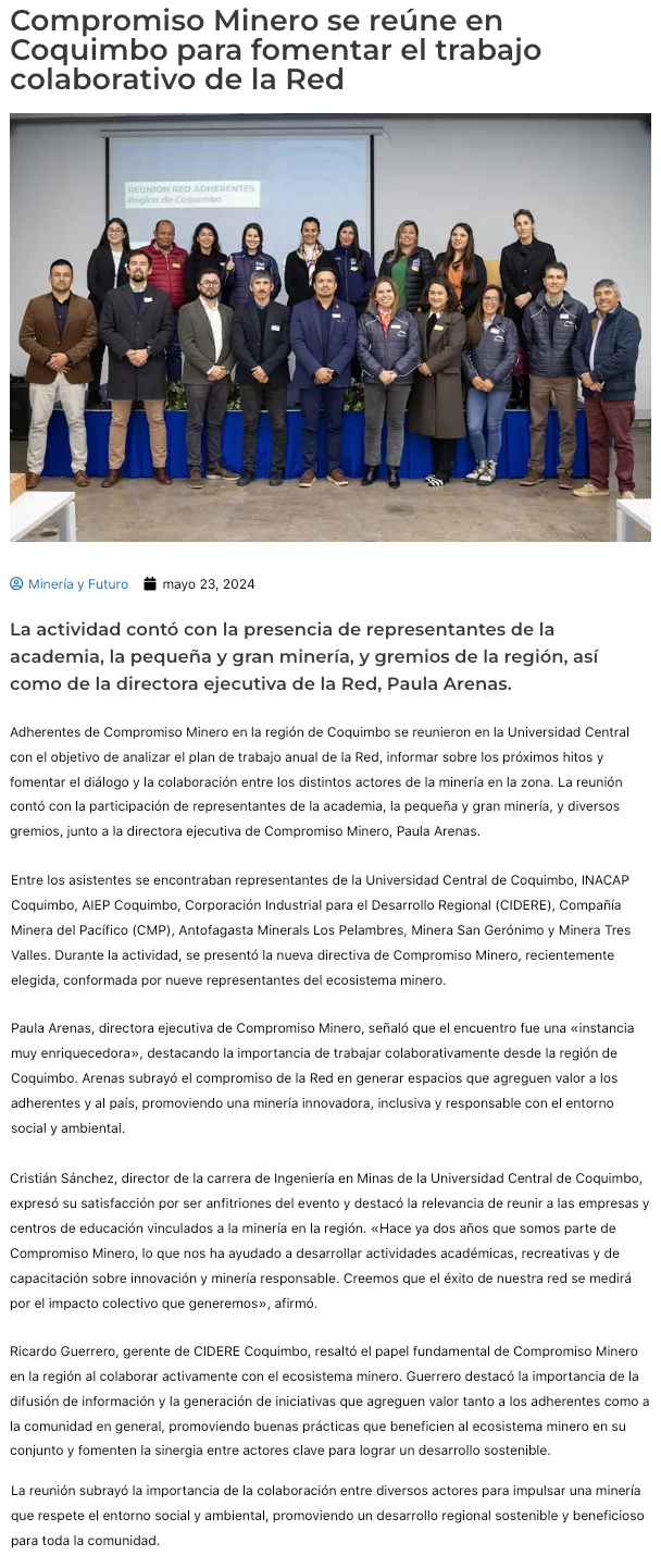 Región de Coquimbo. Adherentes de Compromiso Minero se reunieron para seguir fomentando el trabajo colaborativo de la Red - (serenaycoquimbo.cl)