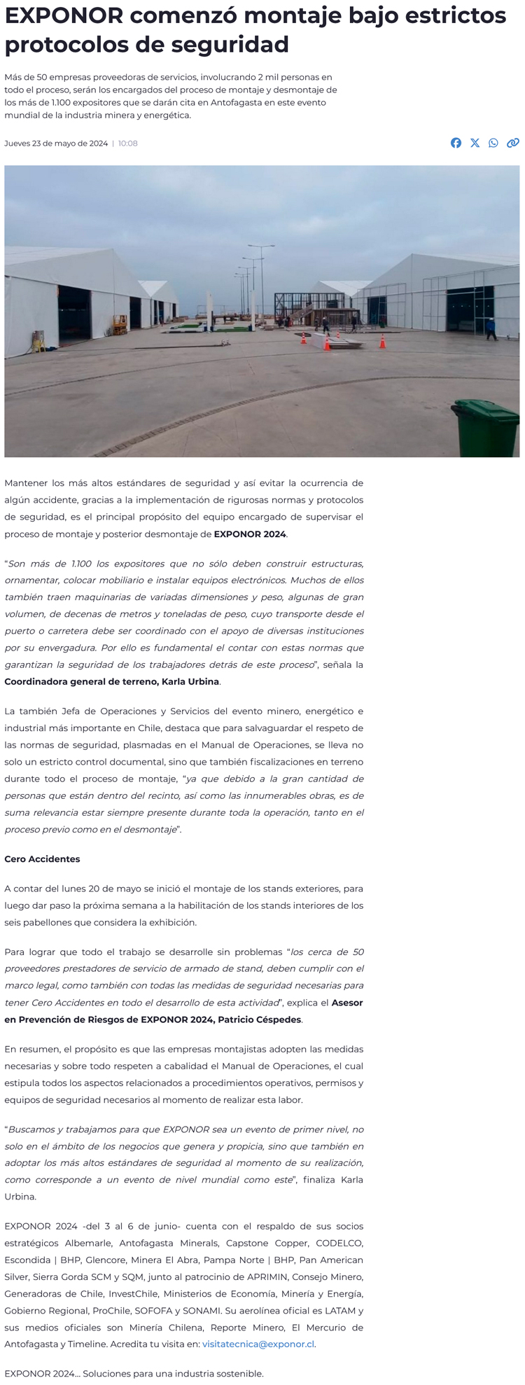 Comenzó el montaje de Exponor 2024 bajo estrictos protocolos de seguridad - (reporteminero)