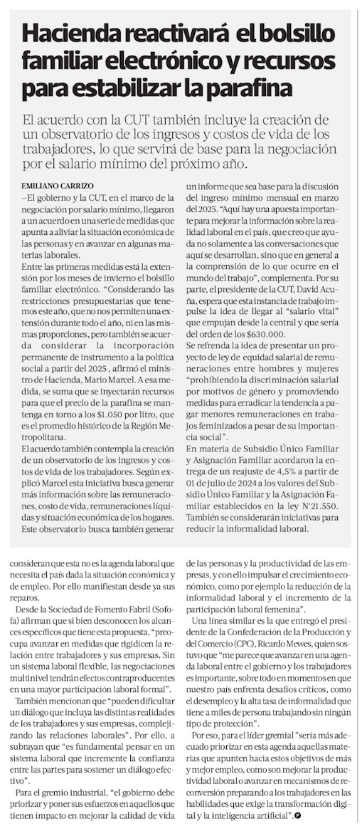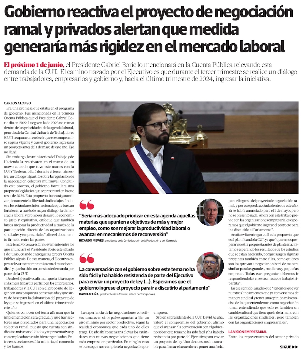 Gobierno accede a demandas de la CUT: enviará proyecto de negociación ramal y paquete de ayudas sociales - (El Mercurio de Santiago)