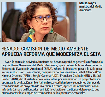 Comisión de Medio Ambiente del Senado aprobó en general la reforma al SEIA - (Diario Financiero)