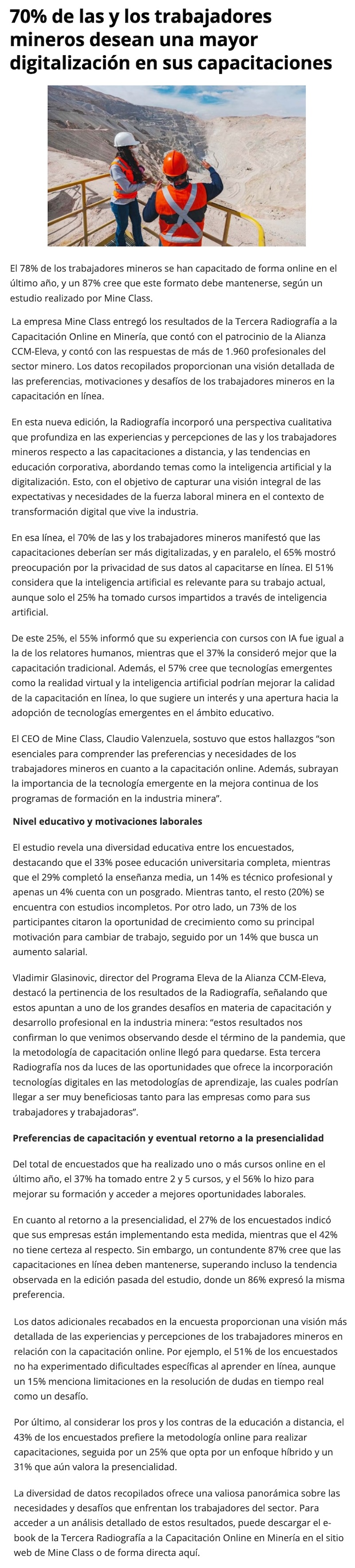 70% de las y los trabajadores mineros desean una mayor digitalización en sus capacitaciones - (portalminero)