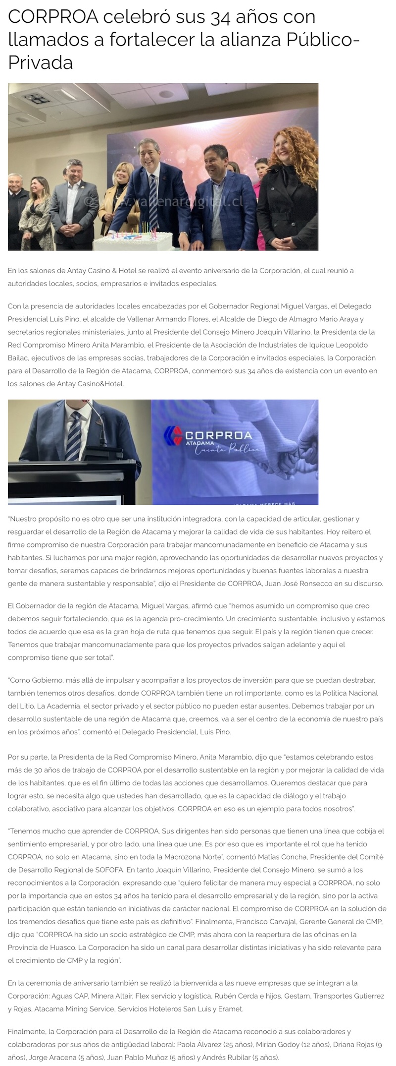 Corproa celebró sus 34 años con llamados a fortalecer la alianza Público- Privada - (atacamanoticias)