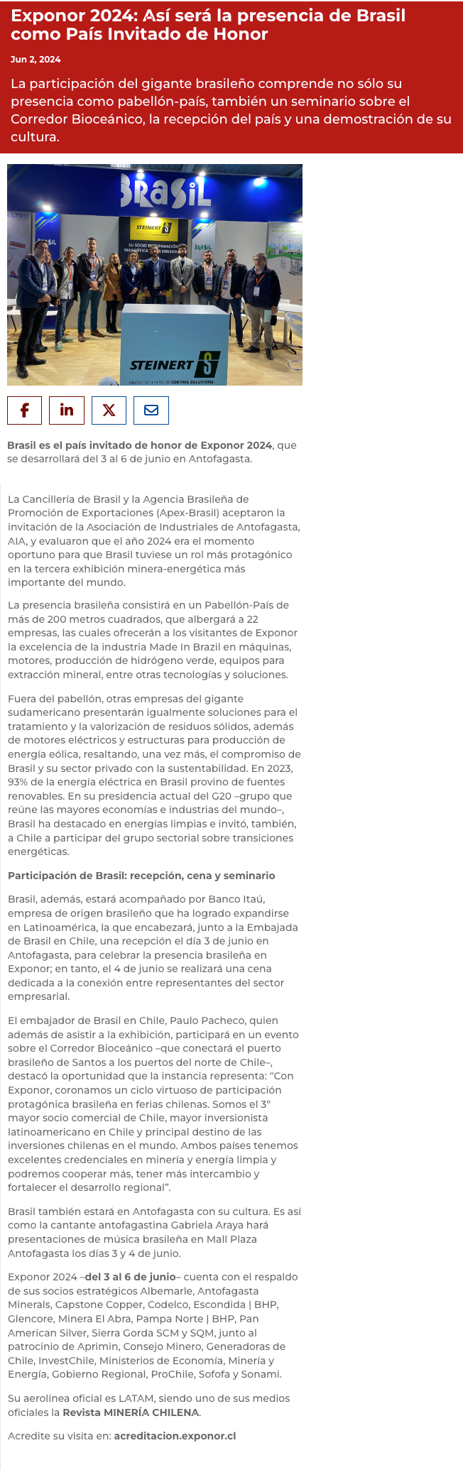 Brasil, país invitado de honor de EXPONOR 2024 - (radioua.cl)