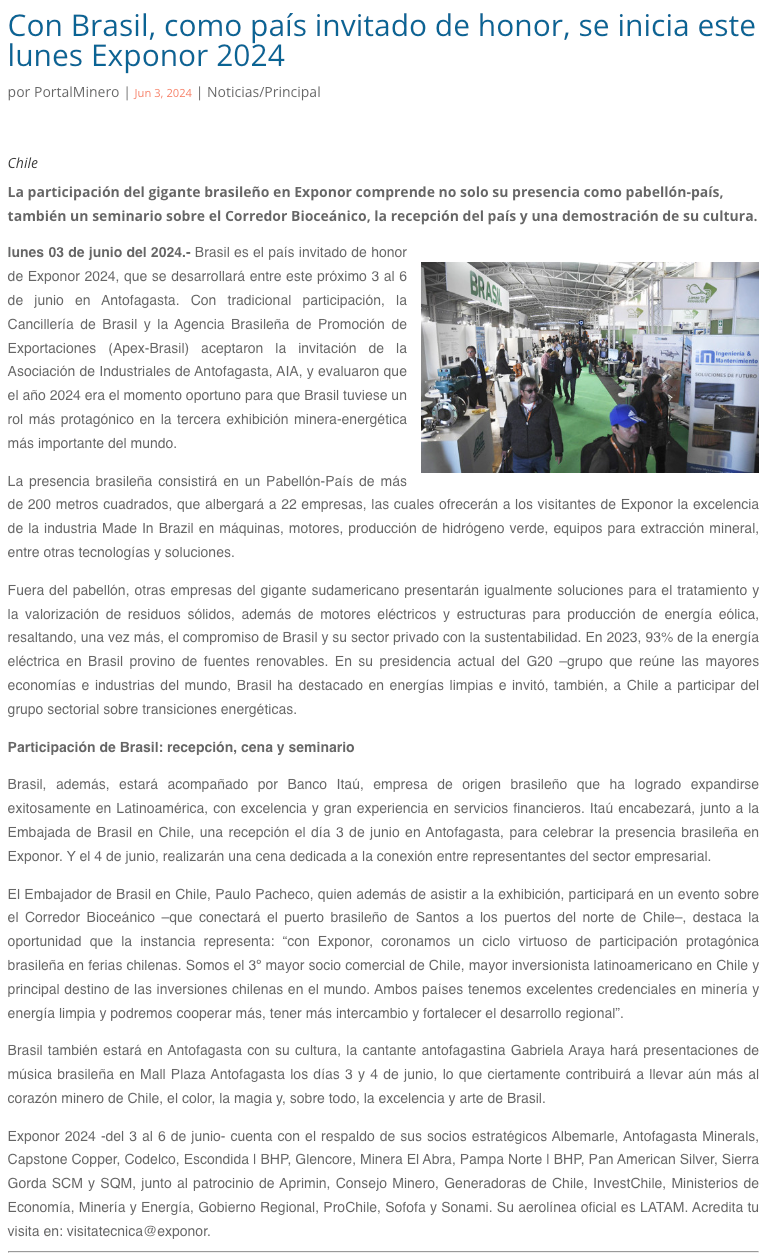 Brasil, país invitado de honor de EXPONOR 2024 - (radioua.cl)