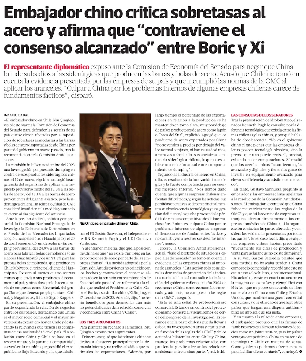 China acusa que sanciones comerciales “contravienen” acuerdo entre Boric y Xi - (El Mercurio de Santiago)
