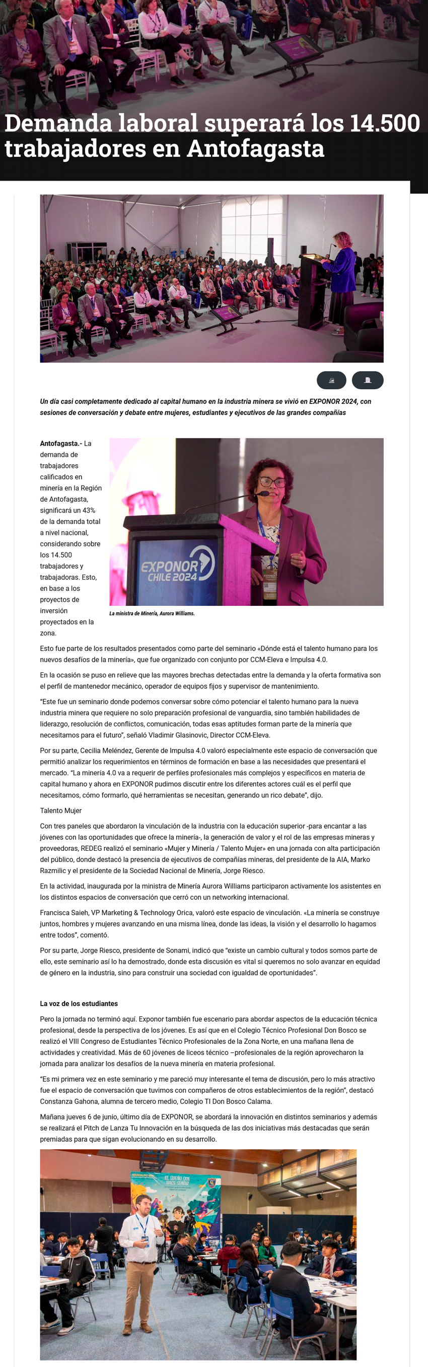Antofagasta necesitará un 43% de la demanda total de trabajadores al 2032 - (timeline)